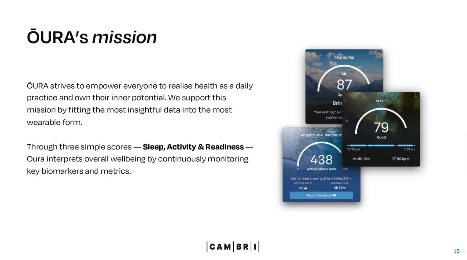 Oura wants to empower everyone to realise health as a daily practice and own their inner potential. Oura doesn't force wearers to do unrealistic activities; they realise we are all human beings with different capacities and motivations. There are multiple factors that contribute to us feeling well and we all take different time to recover and Oura supports this.